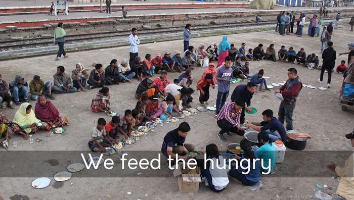 People are... Hungry. So, we feed them. They are thirsty, so we give them to drink.